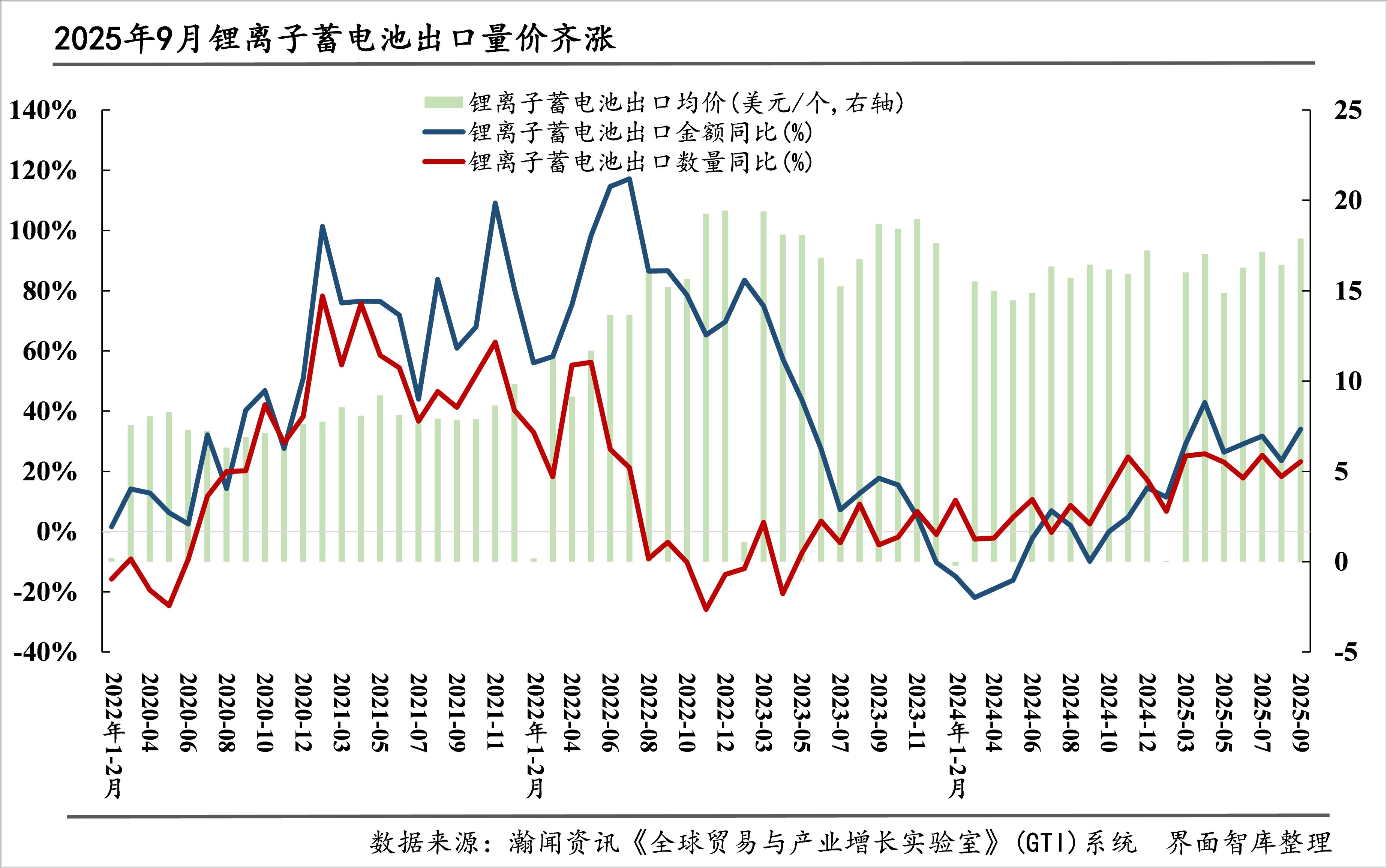 一、锂离子蓄电池出口量价齐涨,太阳能电池出口显著加速