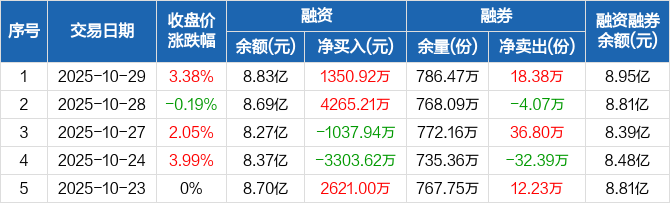 创业板50ETF:融资净买入1350.92万元,融资余额8.83亿元(10-29)