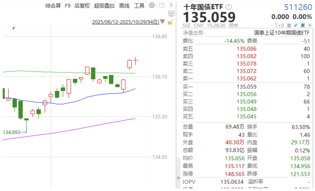 从政策面来看,银行间资金利率自国庆中秋假期后整体偏松,叠加央行重启国债买卖释放乐观信号,资金面宽松有望继续保持。从机构行为来看,交易资金久期自三季度下行后,又呈现逐步上升的状态。总体而言,债券回暖的趋势仍在,投资者可以关注十年国债ETF(511260)、国债ETF(511010),逢低布局。