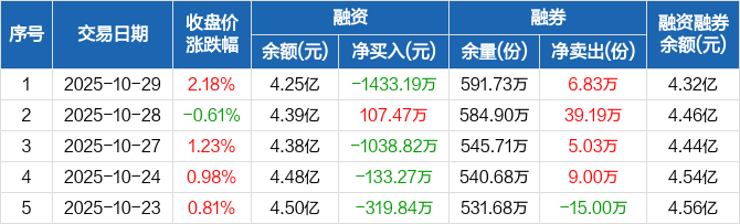 证券ETF:融资净偿还1433.19万元,融资余额4.25亿元(10-29)
