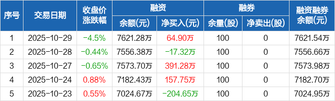 东星医疗:融资净买入64.9万元,融资余额7621.28万元(10-29)
