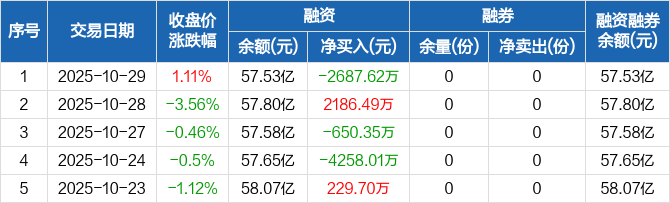 黄金ETF:融资余额57.53亿元,创近一年新低(10-29)