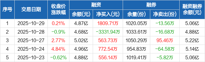 芯片ETF:融资净买入1809.71万元,融资余额4.87亿元(10-29)