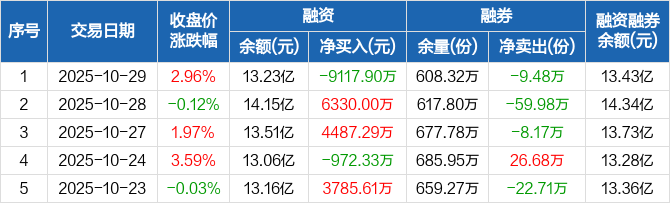 创业板ETF:融资净偿还9117.9万元,融资余额13.23亿元(10-29)