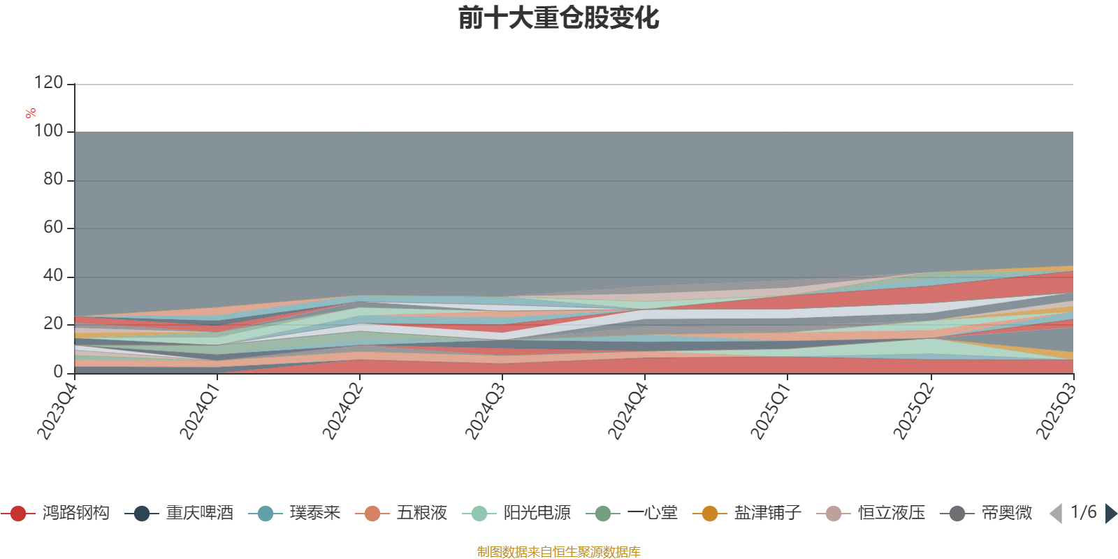 截至2025年三季度末,基金十大重仓股分别是福斯特、泸州老窖、鸿路钢构、万华化学、古井贡酒、盐津铺子、贵州茅台、日辰股份、天合光能、百润股份。
