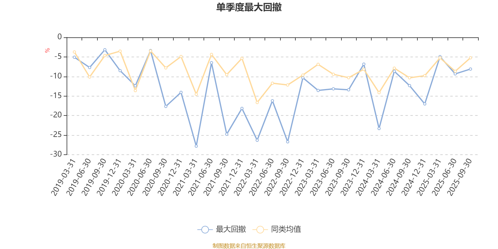 通过所选区间该基金净值增长率分位图,可以观察该基金与同类基金业绩比较情况。图为坐标原点到区间内某时点的净值增长率在同类基金中的分位数。