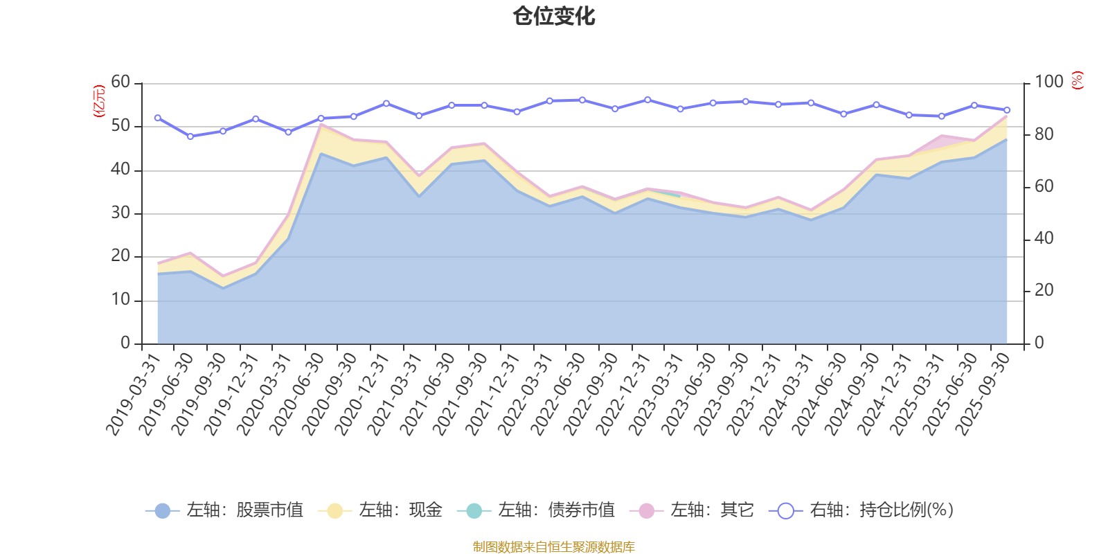 据定期报告数据统计,近三年平均股票仓位为90.78%,同类平均为72.35%。2022年末基金达到93.61%的最高仓位,2019年上半年末最低,为79.54%。