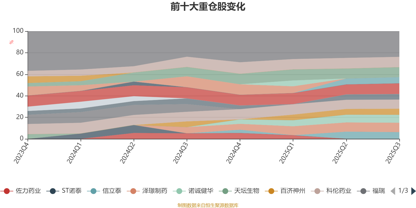 该基金持股集中度较高,近2年前十大重仓股集中度长期超过60%。截至2025年三季度末,基金十大重仓股分别是百利天恒、惠泰医疗、海思科、泽璟制药、科伦药业、诺诚健华、信立泰、澳华内镜、百济神州、悦康药业。