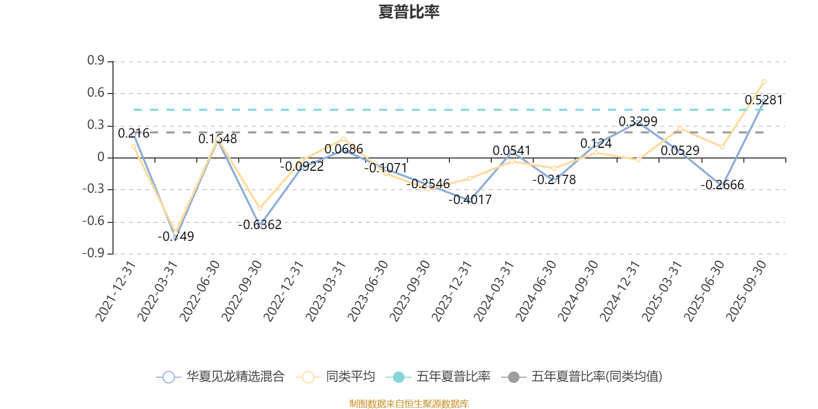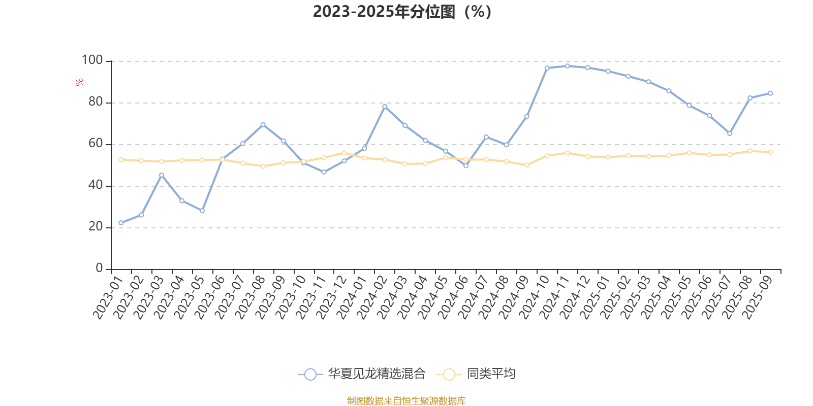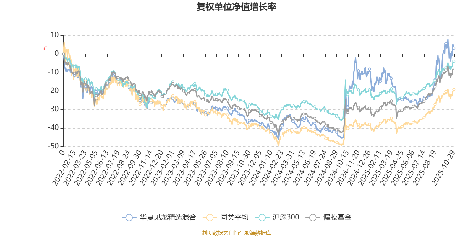 截至10月29日,华夏见龙精选混合近三个月复权单位净值增长率为31.92%,位于同类可比基金63/621;近半年复权单位净值增长率为37.64%,位于同类可比基金193/621;近一年复权单位净值增长率为27.38%,位于同类可比基金347/611;近三年复权单位净值增长率为45.80%,位于同类可比基金100/518。