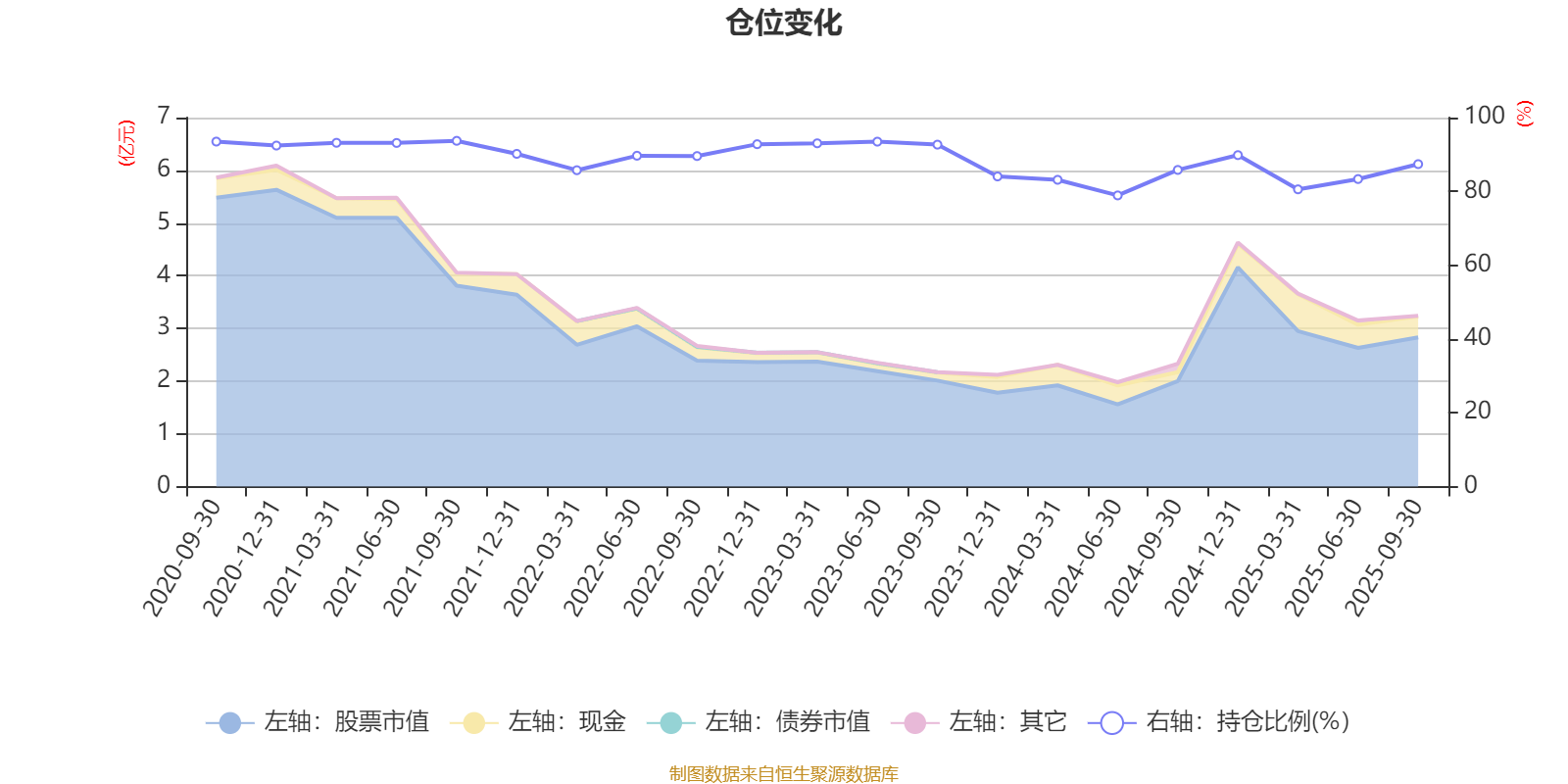 据定期报告数据统计,近三年平均股票仓位为87.09%,同类平均为85.66%。2021年三季度末基金达到93.71%的最高仓位,2024年上半年末最低,为78.91%。