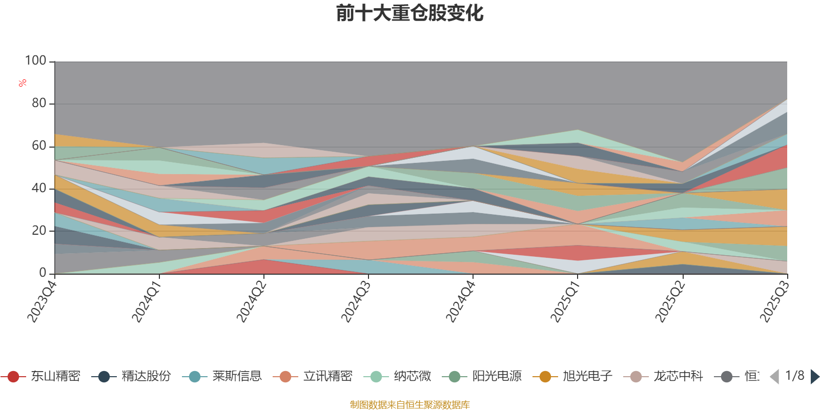 基金管理人在三季报中表示,报告期内,我们大幅增加了 AI 相关公司的持仓,核心是芯片、算力方向。我们看好中国公司在本轮科技浪潮中的竞争力。报告期内,我们减持了军工可控核聚变等方向的持仓,我们仍看好军工方向,但对于短期涨幅显著超越其基本面的股票,决定予以减仓。
