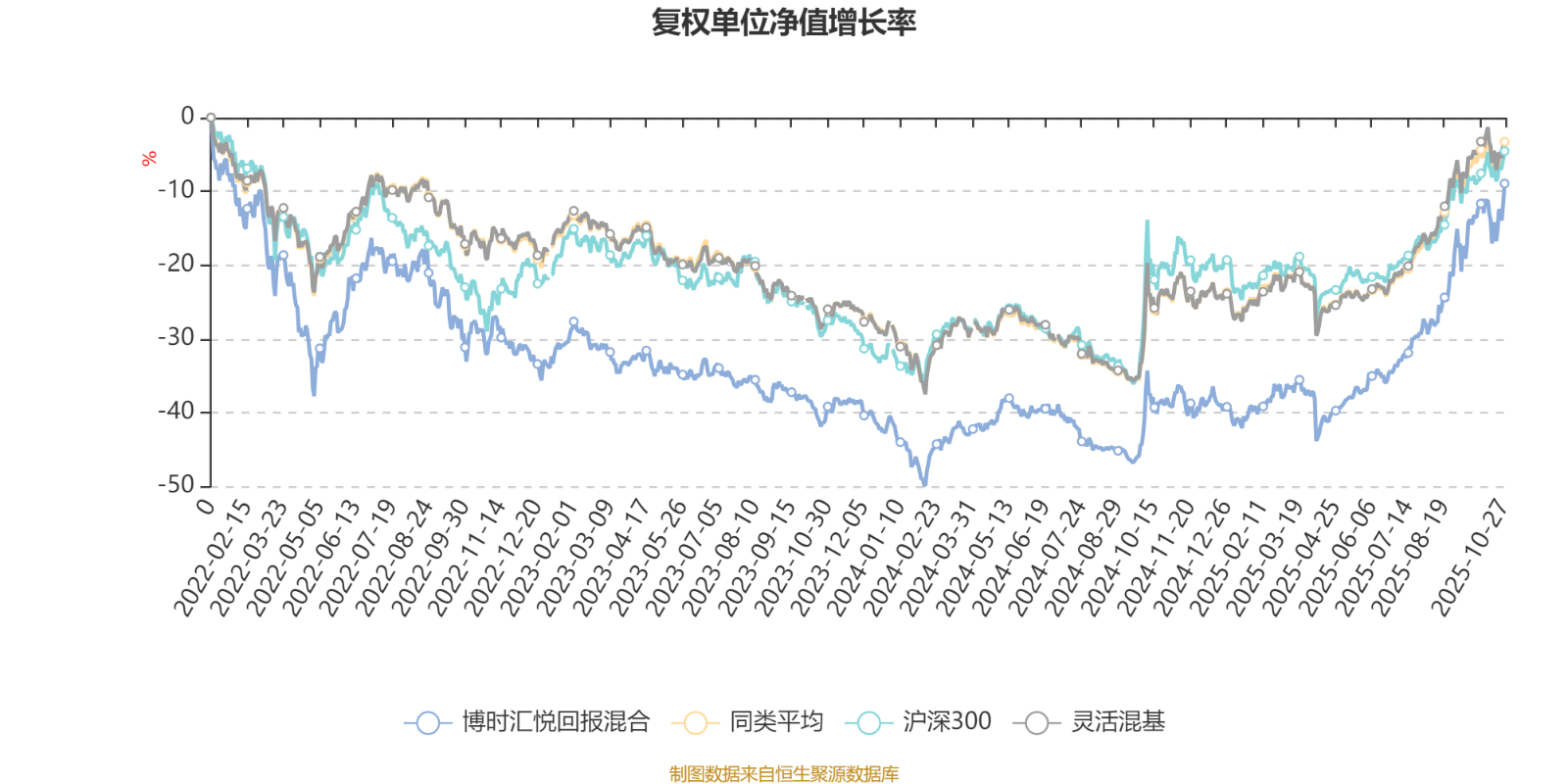 截至10月27日,博时汇悦回报混合近三个月复权单位净值增长率为28.92%,位于同类可比基金200/1287;近半年复权单位净值增长率为51.05%,位于同类可比基金153/1287;近一年复权单位净值增长率为48.40%,位于同类可比基金179/1287;近三年复权单位净值增长率为30.76%,位于同类可比基金333/1286。