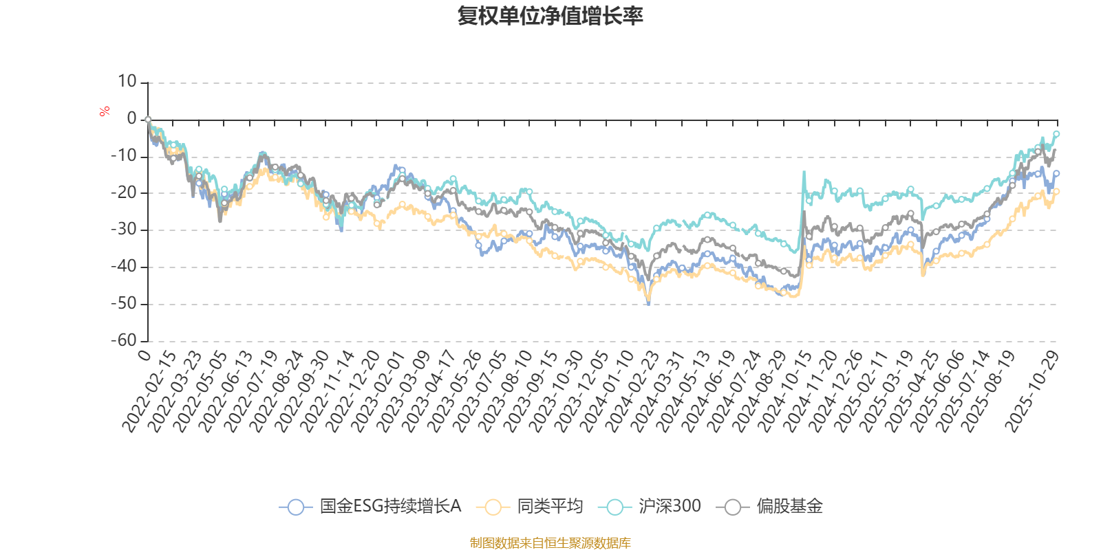 截至10月29日,国金ESG持续增长A近三个月复权单位净值增长率为10.22%,位于同类可比基金442/689;近半年复权单位净值增长率为32.48%,位于同类可比基金277/688;近一年复权单位净值增长率为30.15%,位于同类可比基金299/657;近三年复权单位净值增长率为21.23%,位于同类可比基金163/364。