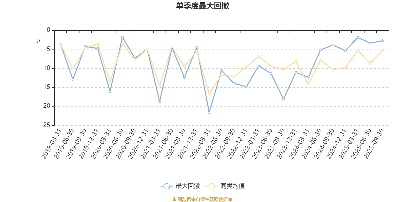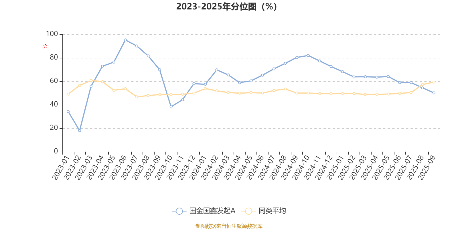 通过所选区间该基金净值增长率分位图,可以观察该基金与同类基金业绩比较情况。图为坐标原点到区间内某时点的净值增长率在同类基金中的分位数。