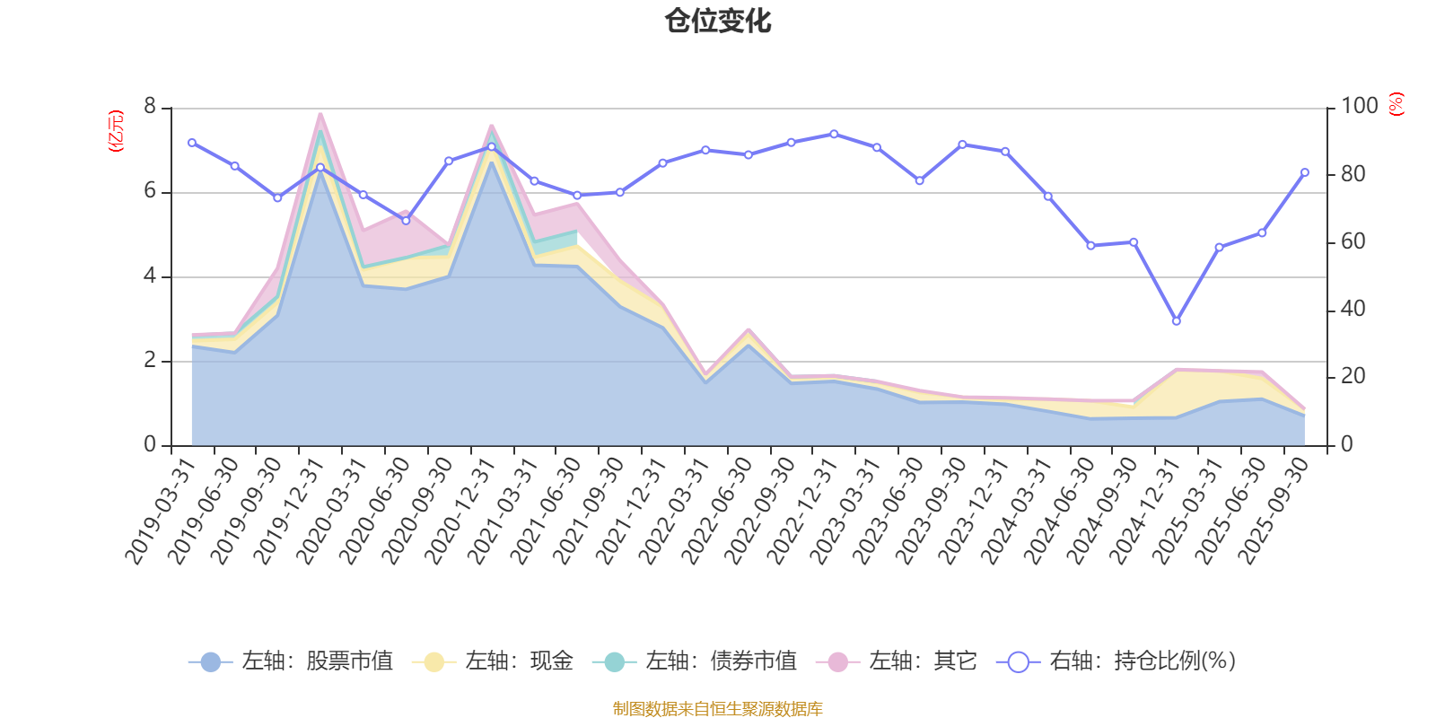 据定期报告数据统计,近三年平均股票仓位为72.3%,同类平均为72.35%。2022年末基金达到92.22%的最高仓位,2024年末最低,为36.85%。