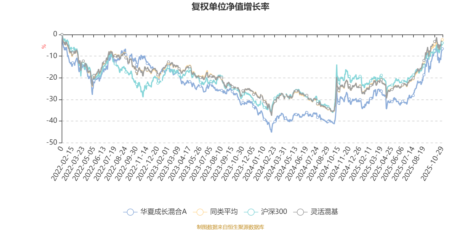 截至10月29日,华夏成长混合A近三个月复权单位净值增长率为18.80%,位于同类可比基金411/1287;近半年复权单位净值增长率为35.34%,位于同类可比基金409/1287;近一年复权单位净值增长率为33.42%,位于同类可比基金415/1287;近三年复权单位净值增长率为5.46%,位于同类可比基金928/1286。