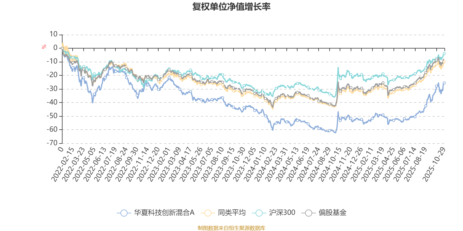 截至10月29日,华夏科技创新混合A近三个月复权单位净值增长率为37.79%,位于同类可比基金17/265;近半年复权单位净值增长率为57.22%,位于同类可比基金32/265;近一年复权单位净值增长率为52.72%,位于同类可比基金38/265;近三年复权单位净值增长率为9.60%,位于同类可比基金181/253。