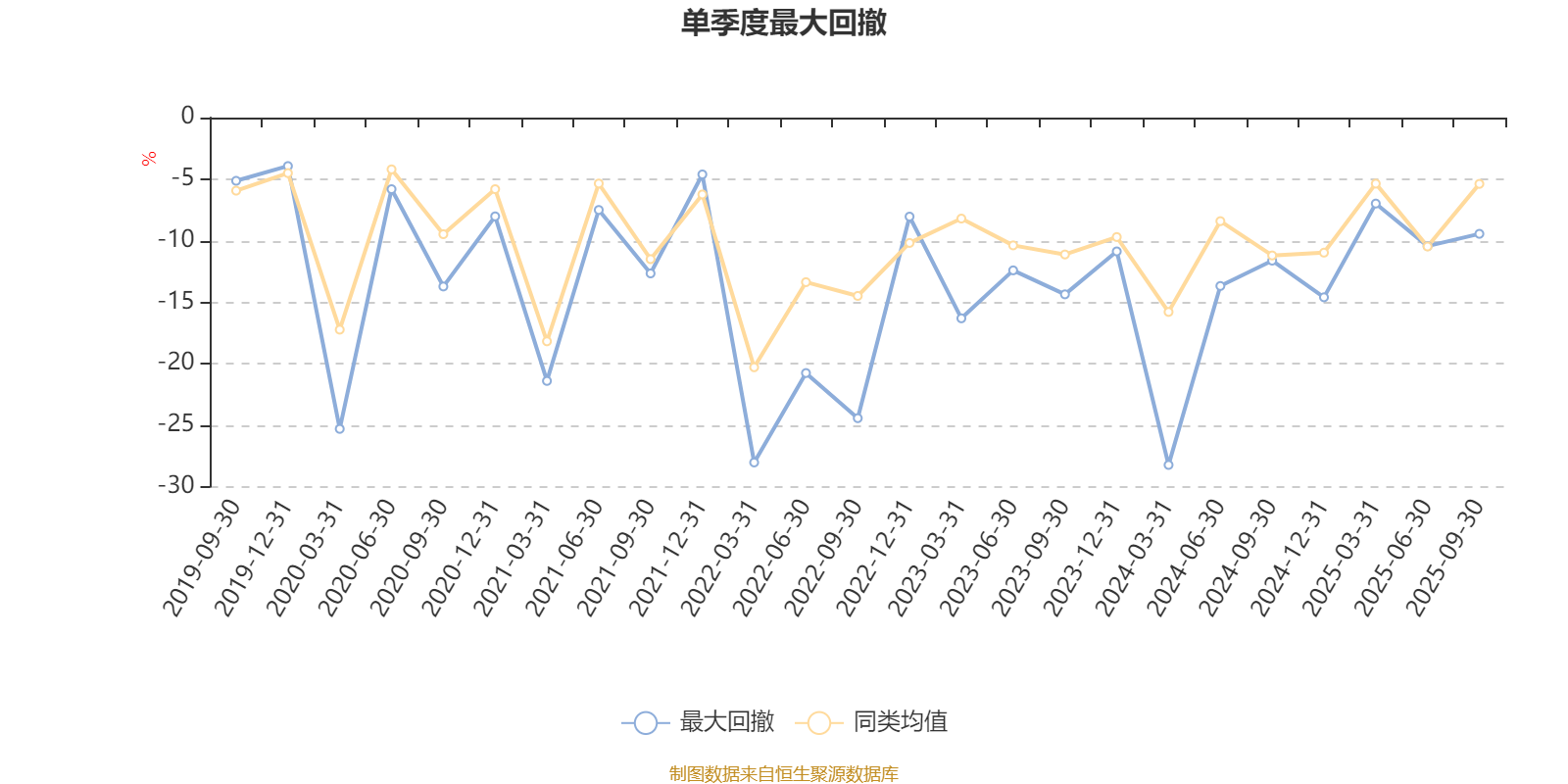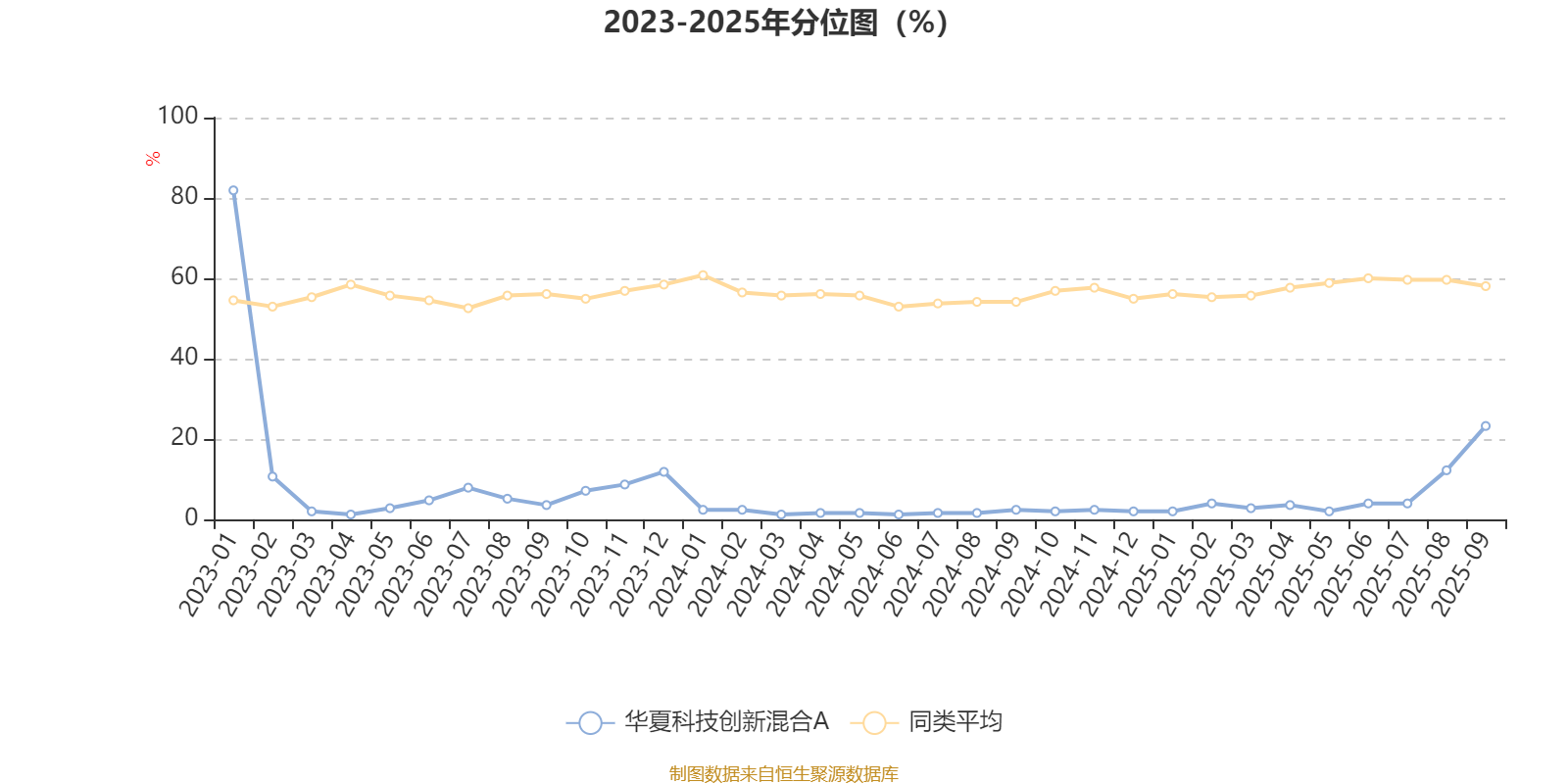 通过所选区间该基金净值增长率分位图,可以观察该基金与同类基金业绩比较情况。图为坐标原点到区间内某时点的净值增长率在同类基金中的分位数。