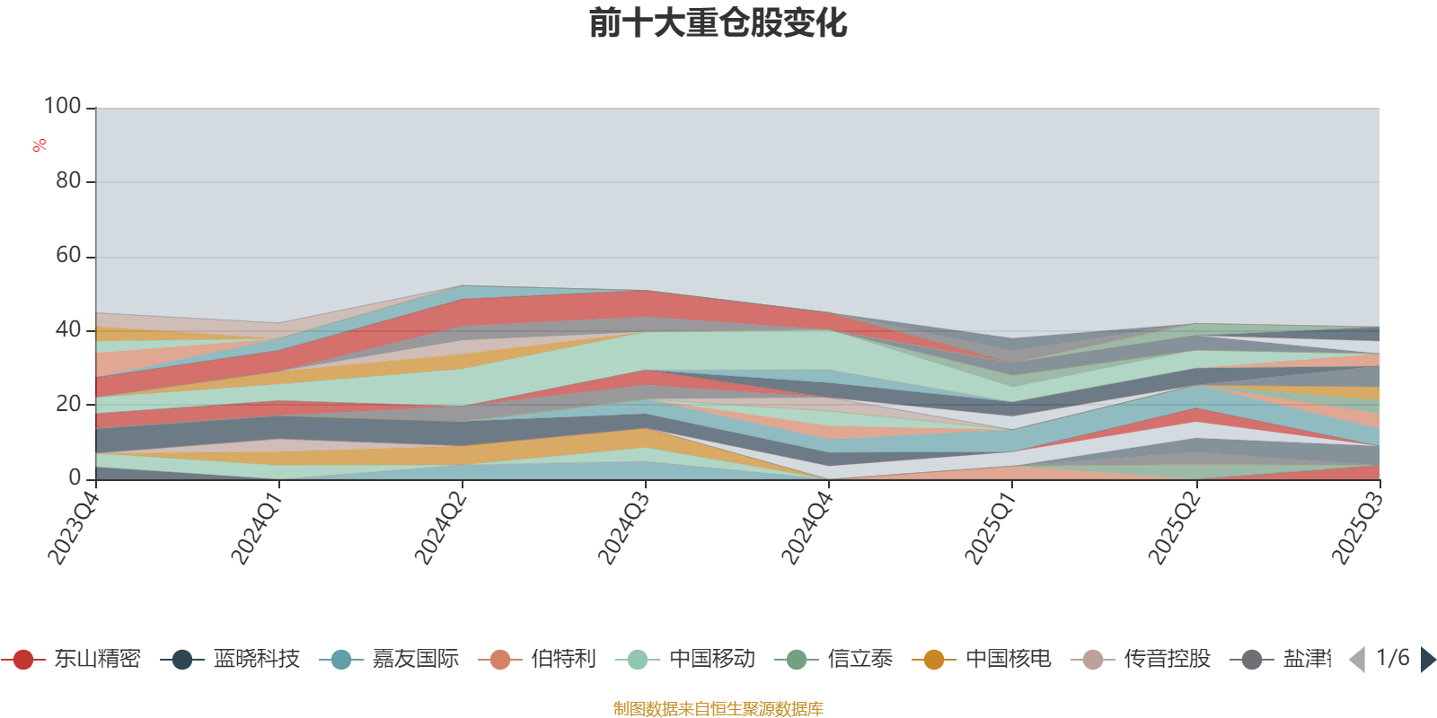 截至2025年三季度末,基金十大重仓股分别是寒武纪、紫金矿业、泽璟制药、宁德时代、金诚信、东山精密、深南电路、生益科技、拓普集团、百利天恒。