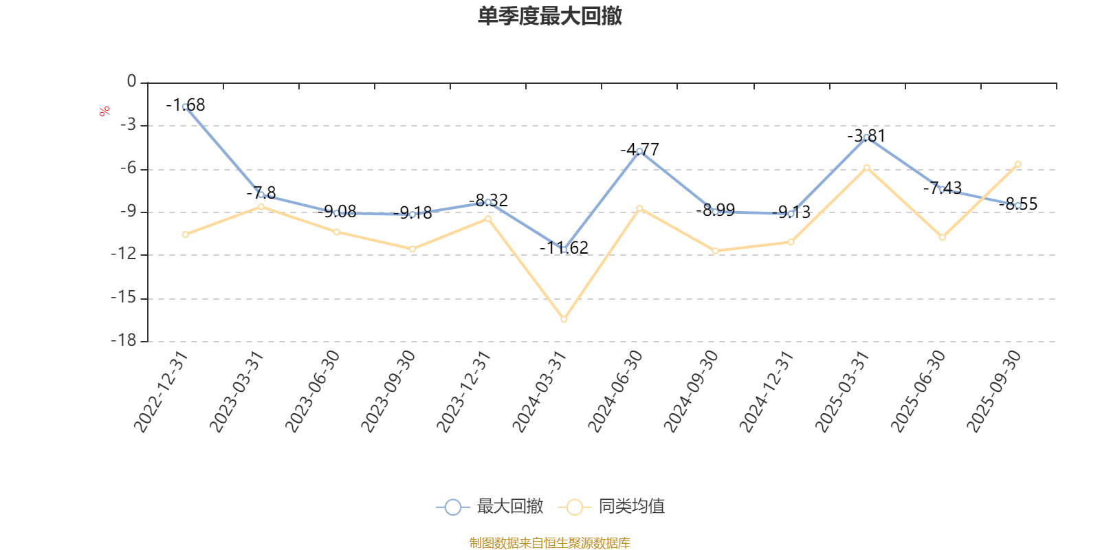 截至10月29日,基金近三年最大回撤为31.13%,同类可比基金排名153/513。单季度最大回撤出现在2024年一季度,为11.62%。
