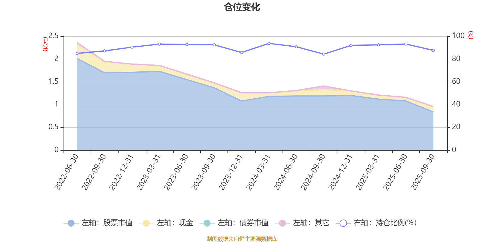 据定期报告数据统计,近三年平均股票仓位为90.75%,同类平均为85.66%。2024年一季度末基金达到93.79%的最高仓位,2024年三季度末最低,为84.36%。