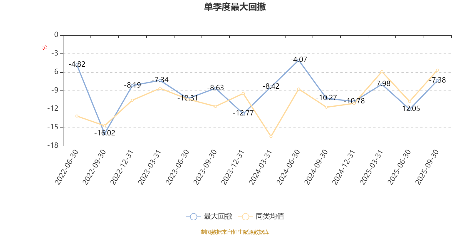 截至10月29日,基金近三年最大回撤为28.48%,同类可比基金排名95/513。单季度最大回撤出现在2022年三季度,为16.02%。