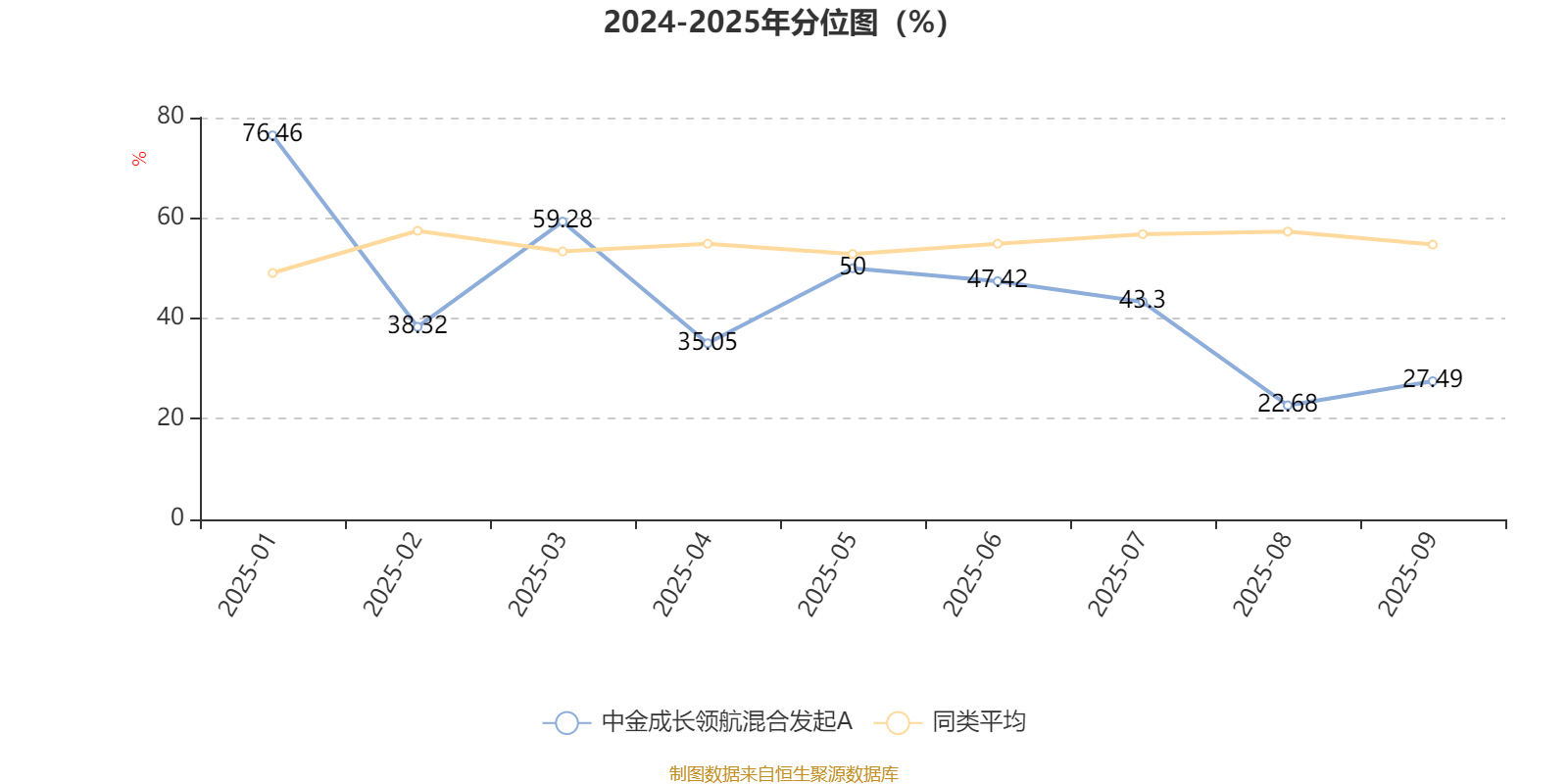 通过所选区间该基金净值增长率分位图,可以观察该基金与同类基金业绩比较情况。图为坐标原点到区间内某时点的净值增长率在同类基金中的分位数。