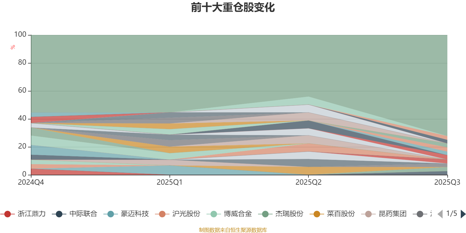截至2025年三季度末,基金十大重仓股分别是新华保险、金风科技、杰瑞股份、福耀玻璃、海尔智家、同和药业、中际联合、华新水泥、藏格矿业、江阴银行。