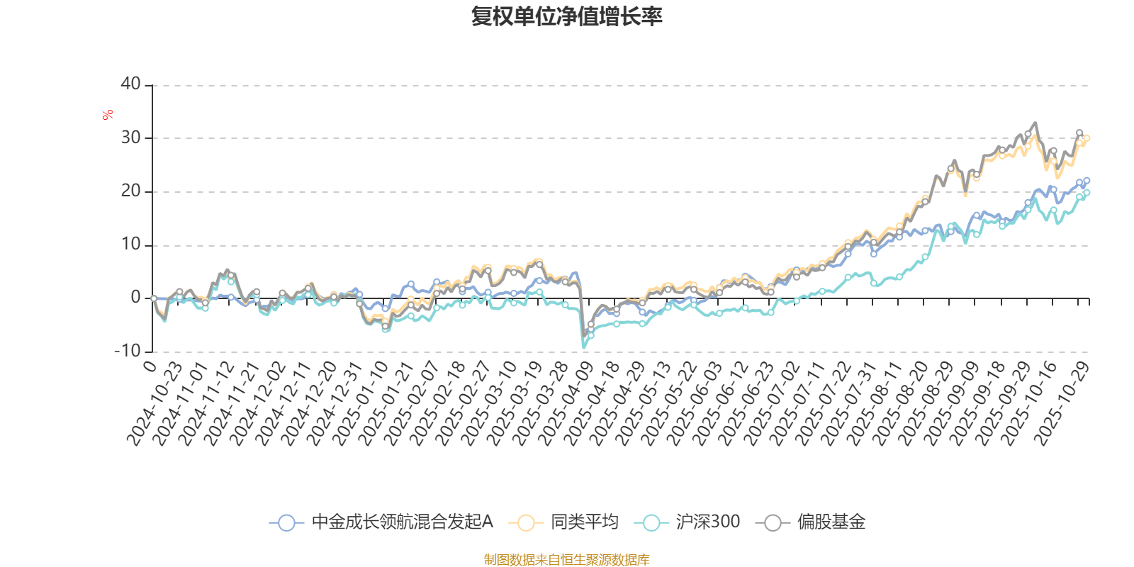 截至10月29日,中金成长领航混合发起A近三个月复权单位净值增长率为10.27%,位于同类可比基金437/689;近半年复权单位净值增长率为25.29%,位于同类可比基金395/688;近一年复权单位净值增长率为22.58%,位于同类可比基金413/657。