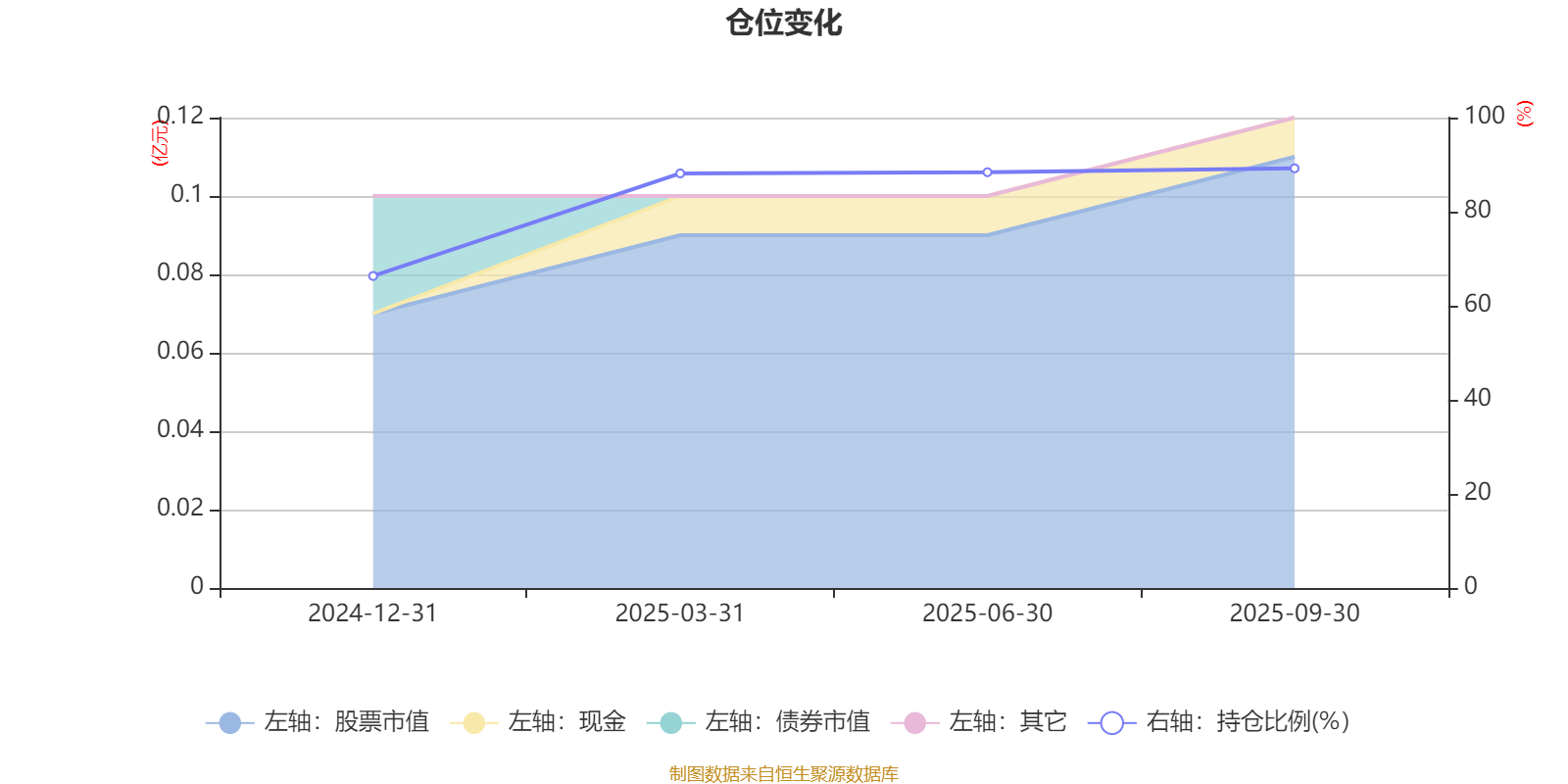 据定期报告数据统计,成立以来平均股票仓位为83.02%,同类平均为83.73%。2025年三季度末基金达到89.22%的最高仓位,2024年末最低,为66.33%。