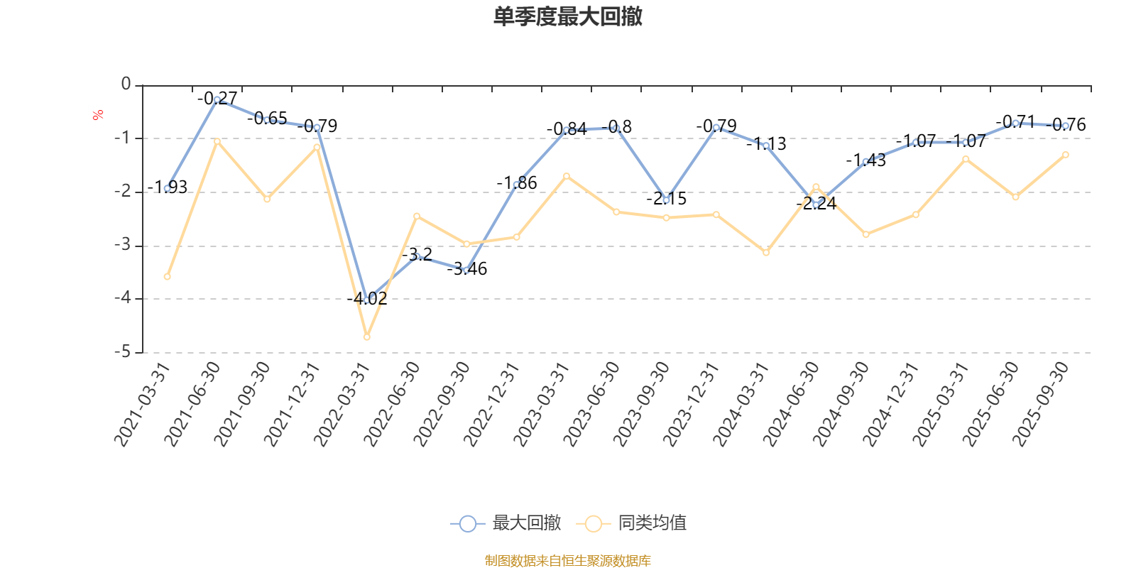 截至10月24日,基金近三年最大回撤为3.49%,同类可比基金排名95/552。单季度最大回撤出现在2022年一季度,为4.02%。