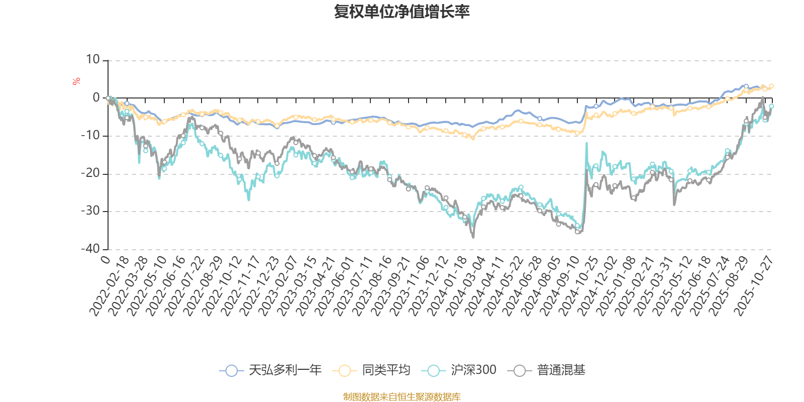 截至10月24日,天弘多利一年近三个月复权单位净值增长率为0.97%,位于同类可比基金510/629;近半年复权单位净值增长率为4.27%,位于同类可比基金397/629;近一年复权单位净值增长率为5.07%,位于同类可比基金461/623;近三年复权单位净值增长率为9.62%,位于同类可比基金357/557。