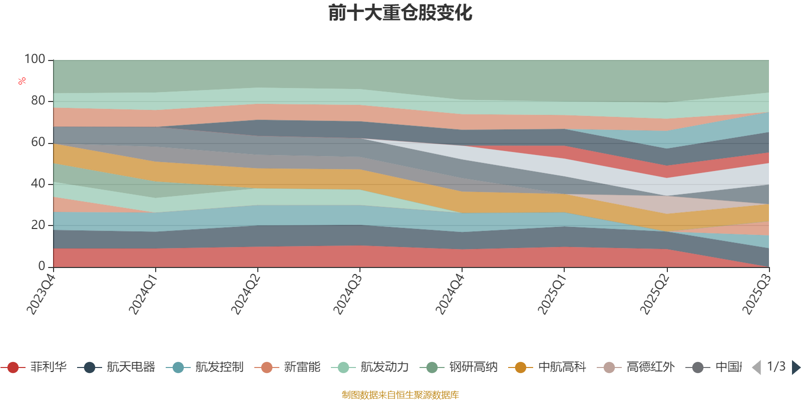 该基金持股集中度较高,近2年前十大重仓股集中度长期超过60%。截至2025年三季度末,基金十大重仓股分别是国睿科技、国博电子、西部超导、昊华科技、华秦科技、航天电器、中航高科、新雷能、航发控制、航天南湖。