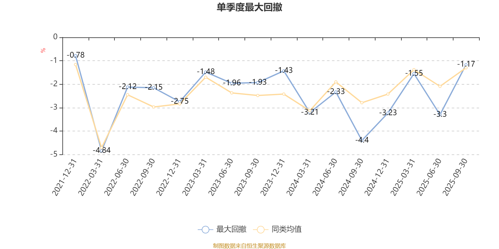 截至10月29日,基金近三年最大回撤为7.01%,同类可比基金排名309/534。单季度最大回撤出现在2022年一季度,为4.84%。
