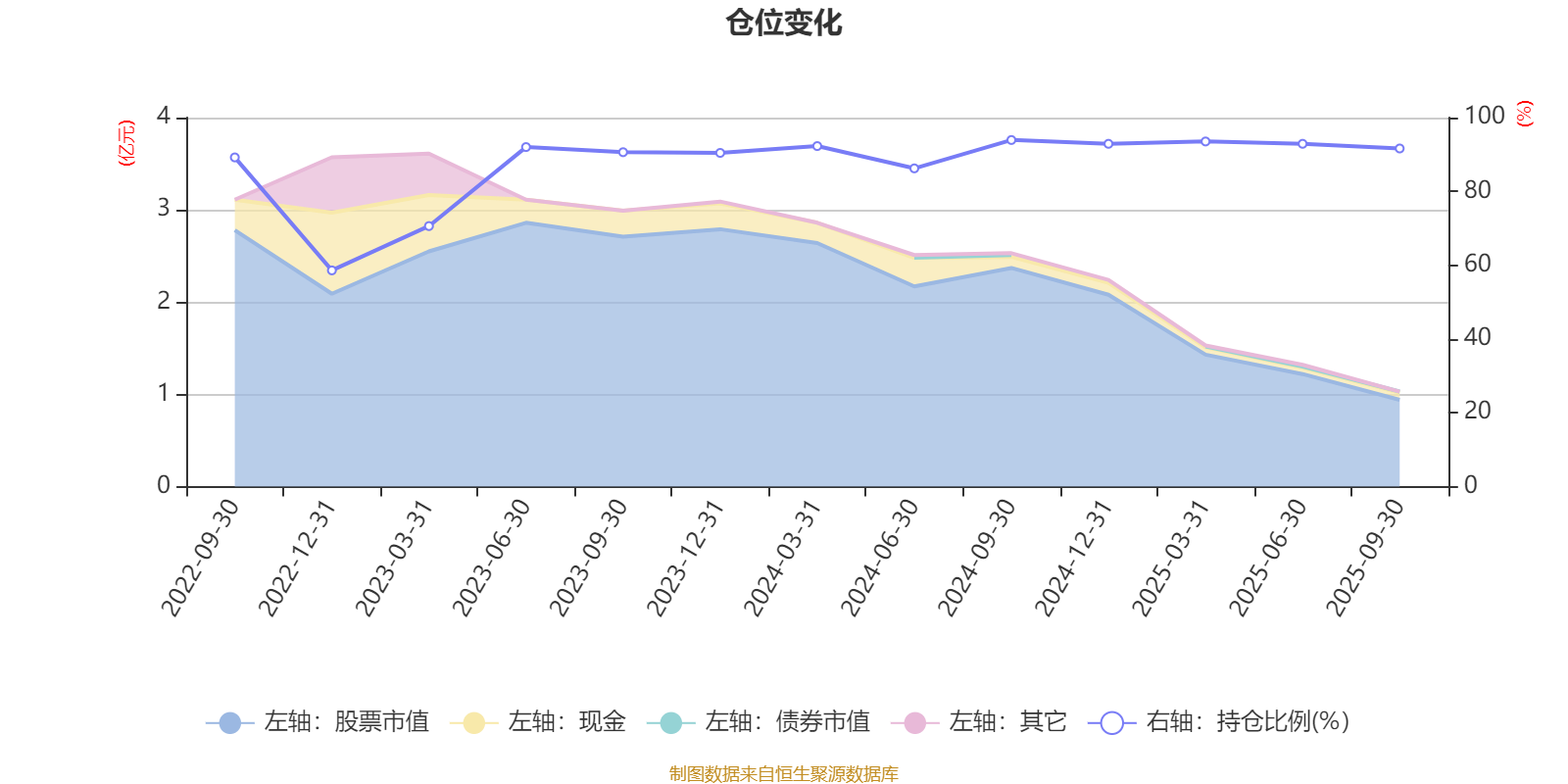 据定期报告数据统计,近三年平均股票仓位为87.14%,同类平均为85.66%。2024年三季度末基金达到93.93%的最高仓位,2022年末最低,为58.59%。