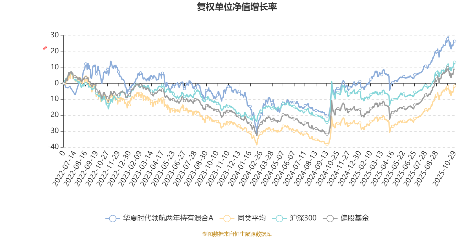 截至10月29日,华夏时代领航两年持有混合A近三个月复权单位净值增长率为13.77%,位于同类可比基金332/621;近半年复权单位净值增长率为25.13%,位于同类可比基金399/621;近一年复权单位净值增长率为31.17%,位于同类可比基金301/611;近三年复权单位净值增长率为19.13%,位于同类可比基金260/518。