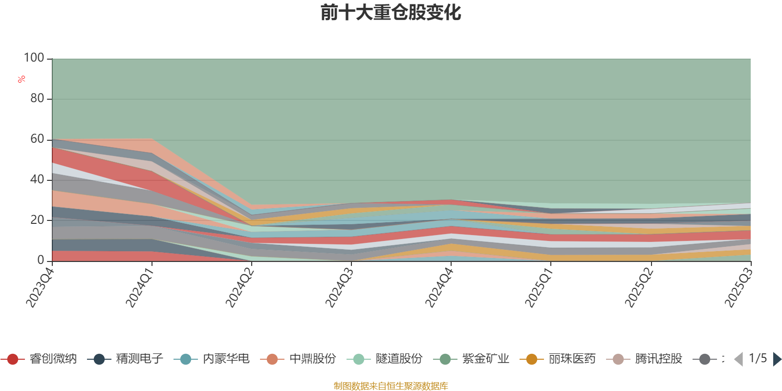 截至2025年三季度末,基金十大重仓股分别是宁德时代、恒瑞医药、紫金矿业、华能国际电力股份、顺络电子、丽珠医药、腾讯控股、银龙股份、北方华创、新和成。