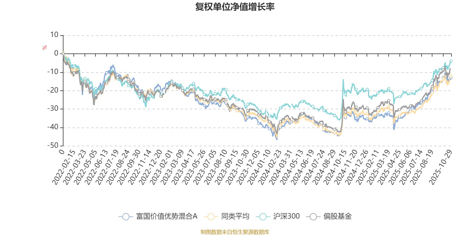 截至10月29日,富国价值优势混合A近三个月复权单位净值增长率为13.71%,位于同类可比基金101/185;近半年复权单位净值增长率为33.73%,位于同类可比基金81/185;近一年复权单位净值增长率为31.13%,位于同类可比基金80/181;近三年复权单位净值增长率为16.00%,位于同类可比基金111/175。