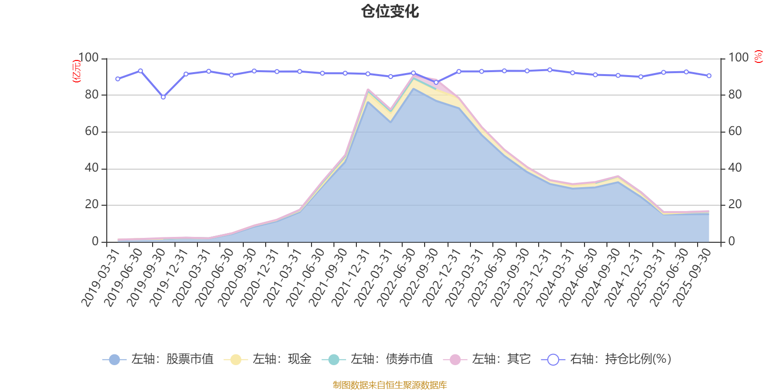 据定期报告数据统计,近三年平均股票仓位为92.18%,同类平均为87.62%。2023年末基金达到93.82%的最高仓位,2019年三季度末最低,为78.98%。