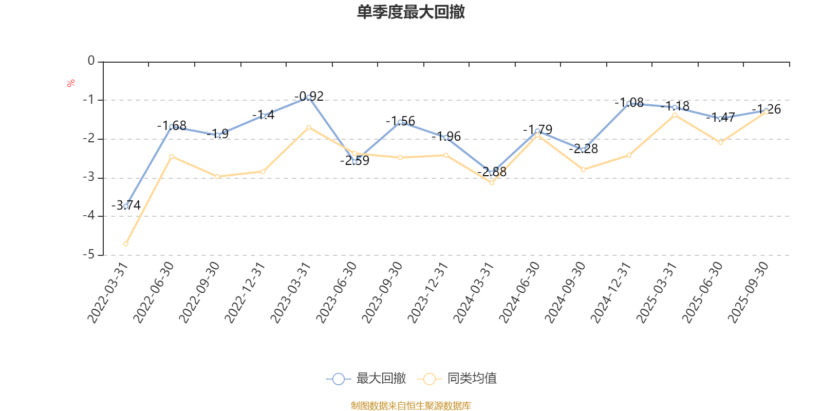 截至10月29日,基金近三年最大回撤为5.98%,同类可比基金排名249/534。单季度最大回撤出现在2022年一季度,为3.74%。