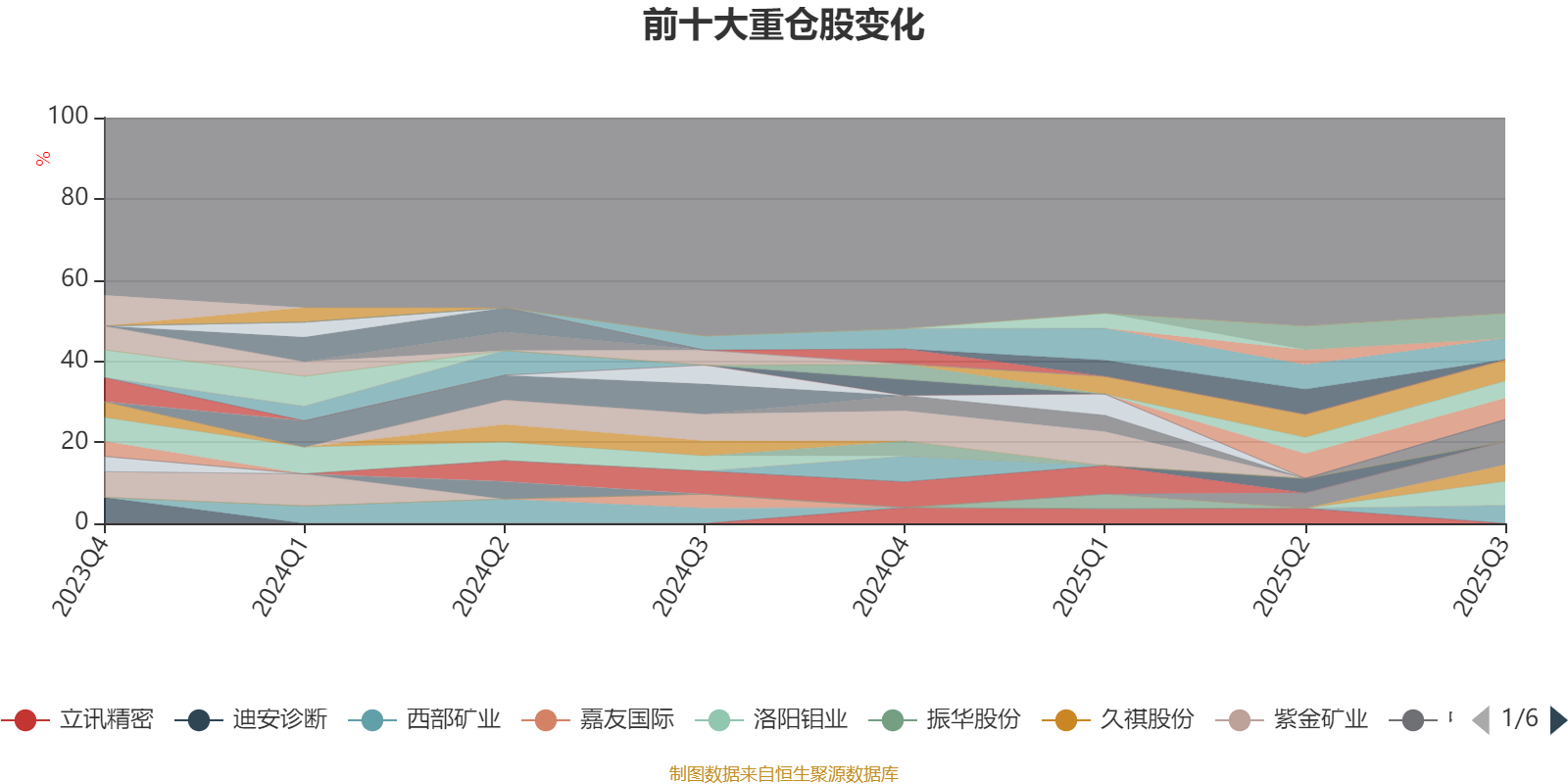 截至2025年三季度末,基金十大重仓股分别是安徽合力、洛阳钼业、中金黄金、徐工机械、三一重工、西部黄金、云铝股份、西部矿业、金诚信、久祺股份。