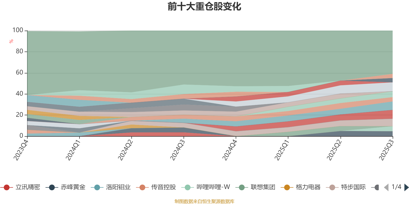 截至2025年三季度末,基金十大重仓股分别是国能日新、同程旅行、明阳电气、特步国际、长城汽车、哔哩哔哩-W、赤峰黄金、中国建筑国际、华鲁恒升、中国中免。