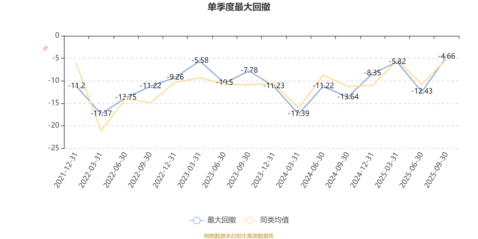 截至10月28日,基金近三年最大回撤为31.57%,同类可比基金排名51/177。单季度最大回撤出现在2024年一季度,为17.39%。