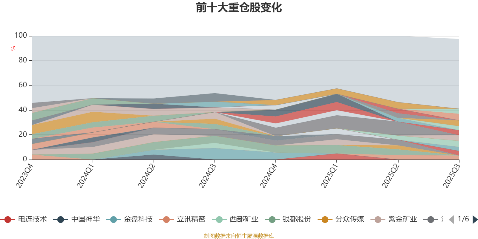 截至2025年三季度末,基金十大重仓股分别是赛轮轮胎、迪威尔、森麒麟、铜陵有色、徐工机械、快手-W、中金黄金、金风科技、立讯精密、香港交易所。