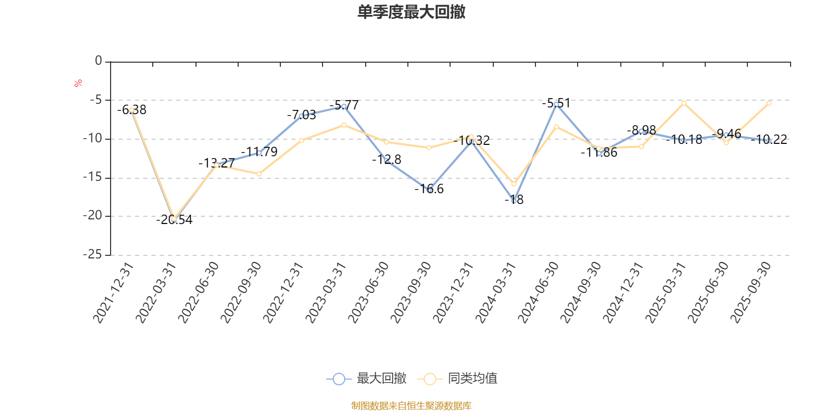 截至10月29日,基金近三年最大回撤为39.73%,同类可比基金排名179/251。单季度最大回撤出现在2022年一季度,为20.54%。