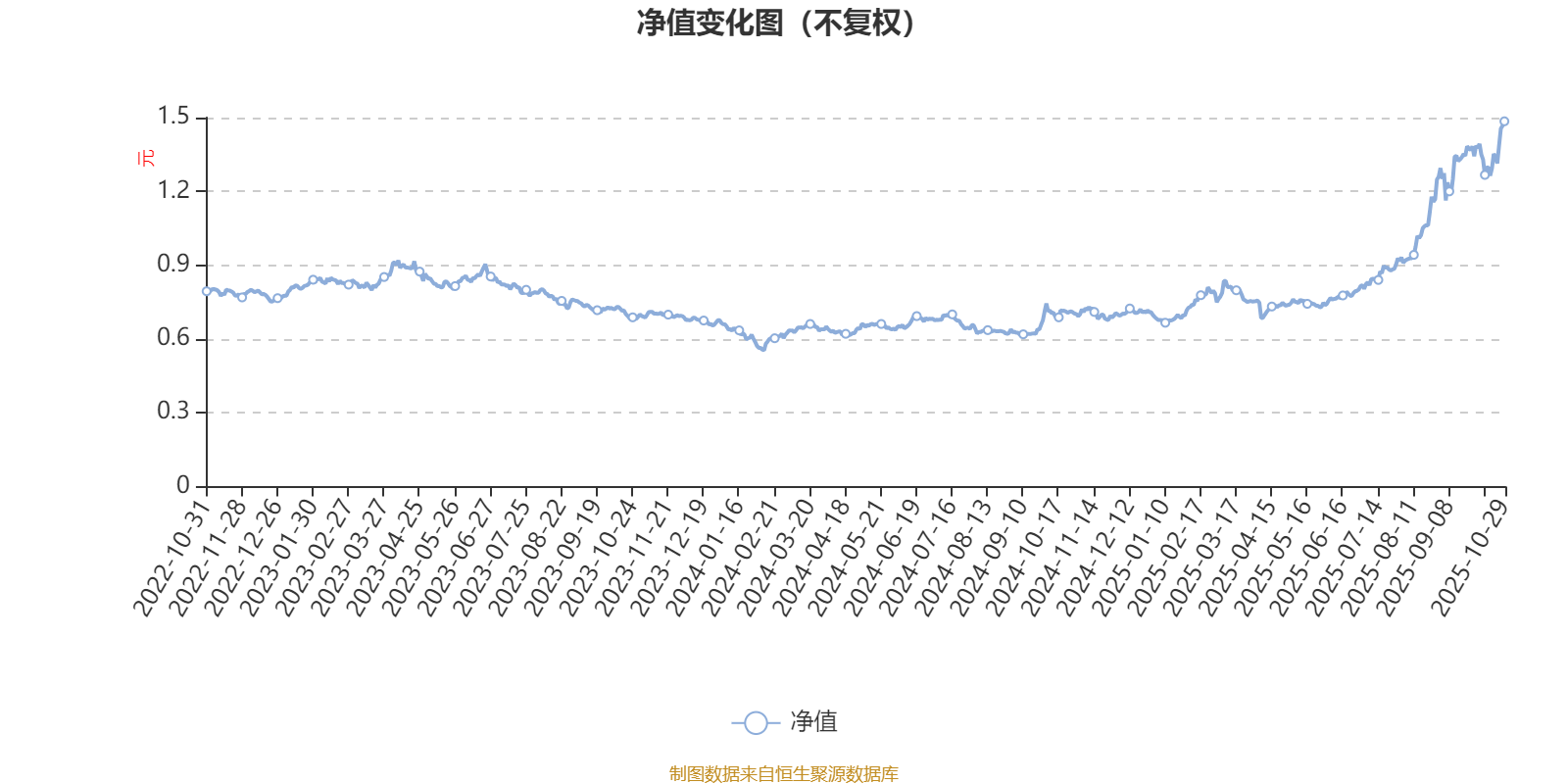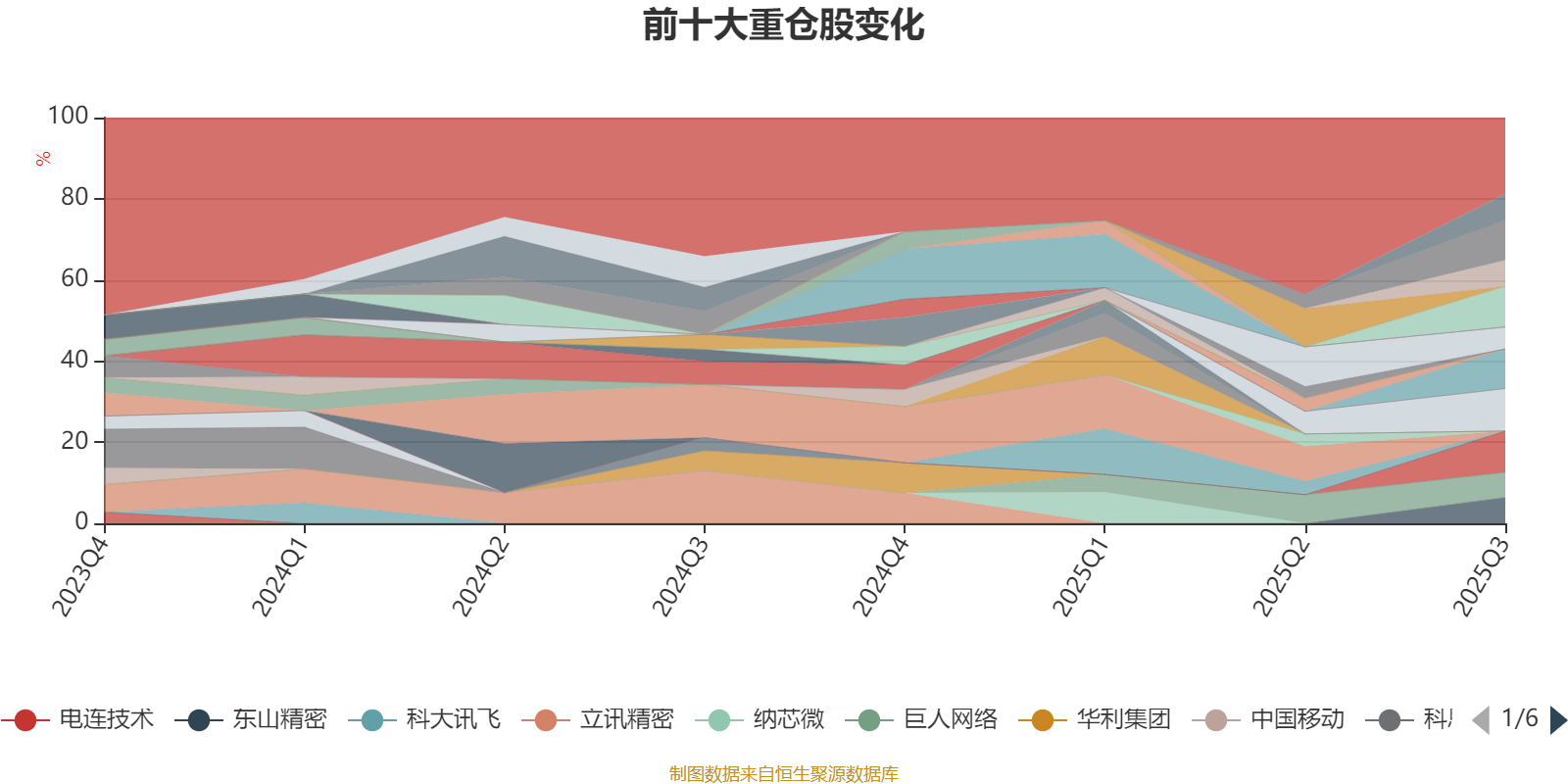 该基金持股集中度较高。截至2025年三季度末,基金十大重仓股分别是深南电路、中际旭创、工业富联、新易盛、寒武纪、兆易创新、东山精密、九方智投控股、巨人网络、沪电股份。