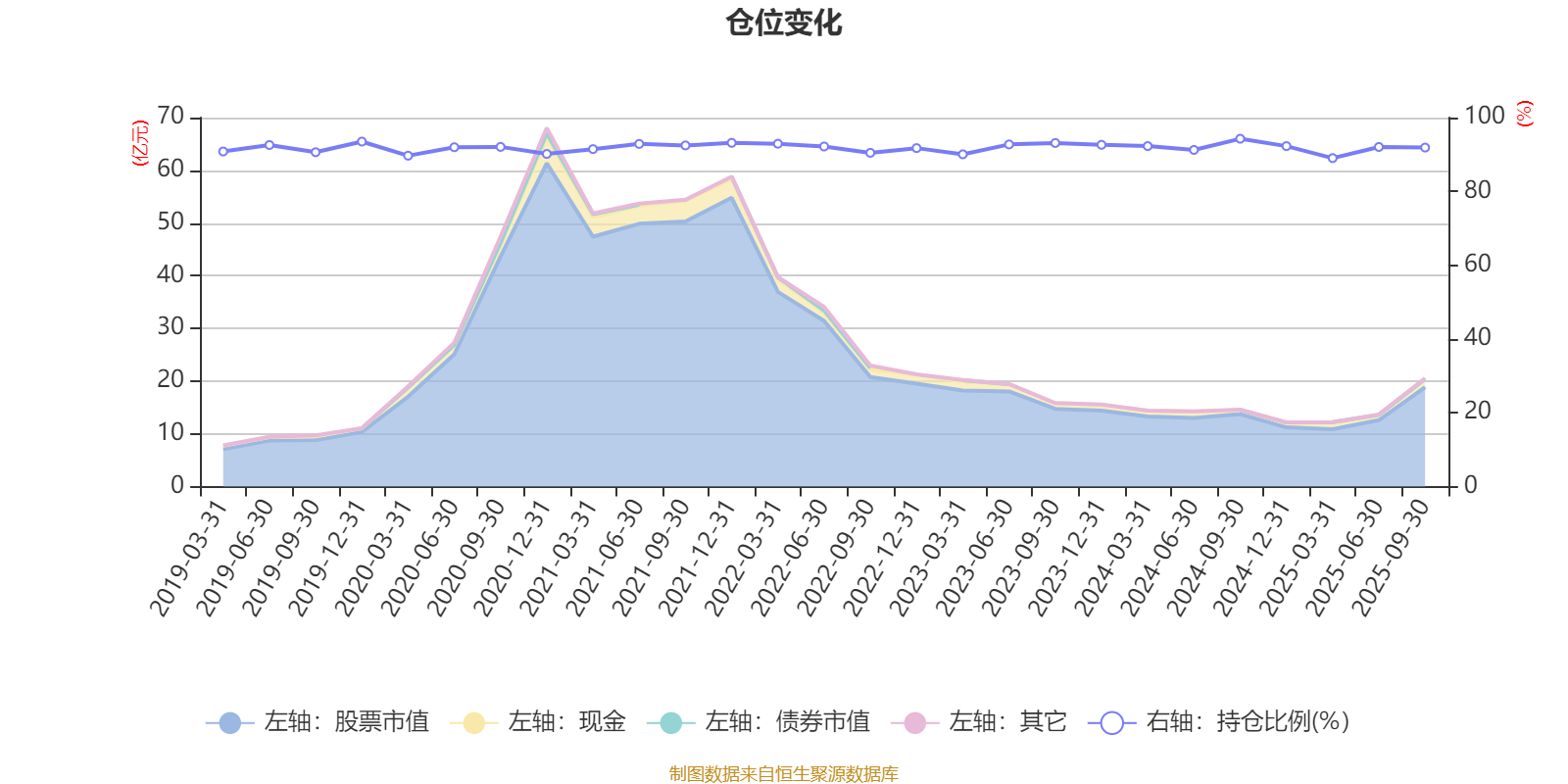 据定期报告数据统计,近三年平均股票仓位为91.94%,同类平均为85.99%。2024年三季度末基金达到94.27%的最高仓位,2025年一季度末最低,为89.02%。