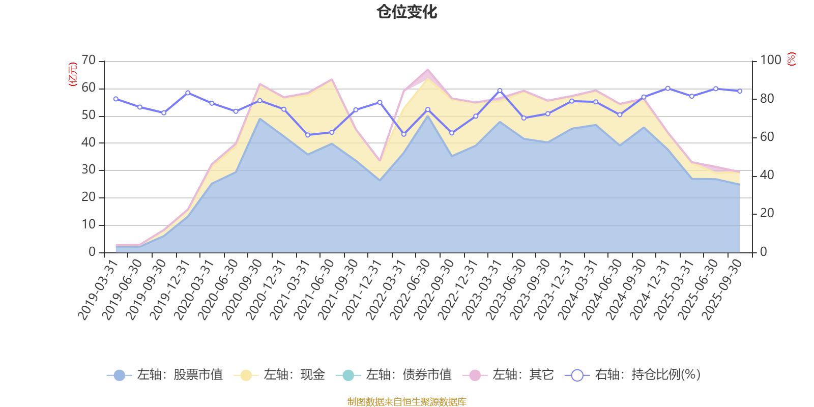 据定期报告数据统计,近三年平均股票仓位为78.91%,同类平均为72.35%。2024年末基金达到85.75%的最高仓位,2021年一季度末最低,为61.4%。
