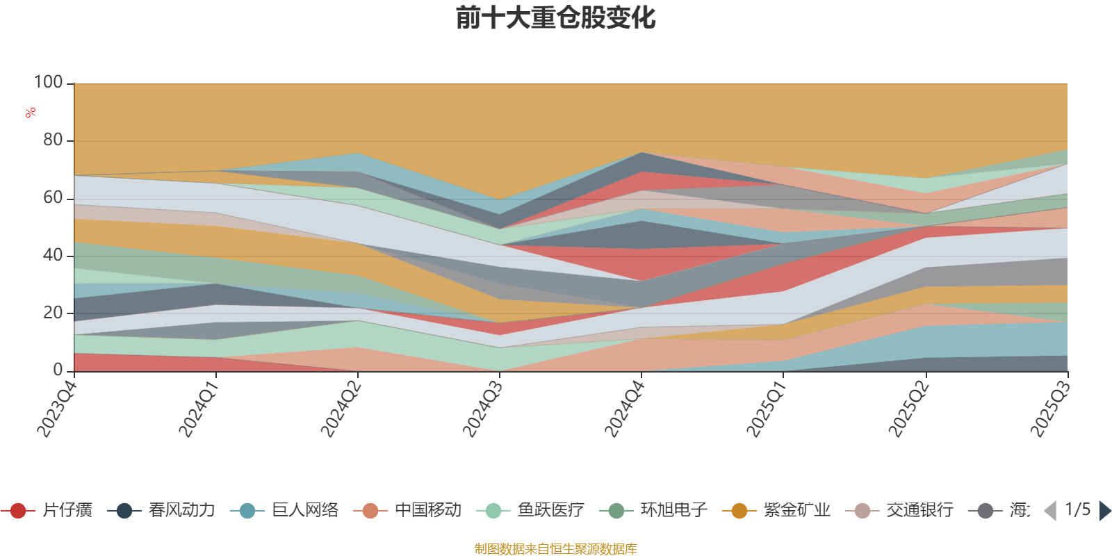 该基金持股集中度较高。截至2025年三季度末,基金十大重仓股分别是巨人网络、科沃斯、美的集团、海大集团、九号公司、环旭电子、紫金矿业、春风动力、华测导航、国光股份。