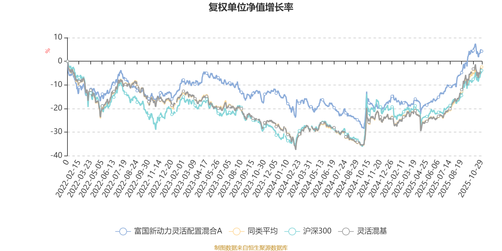 截至10月29日,富国新动力灵活配置混合A近三个月复权单位净值增长率为15.62%,位于同类可比基金511/1287;近半年复权单位净值增长率为26.72%,位于同类可比基金596/1287;近一年复权单位净值增长率为28.89%,位于同类可比基金522/1287;近三年复权单位净值增长率为25.53%,位于同类可比基金475/1286。